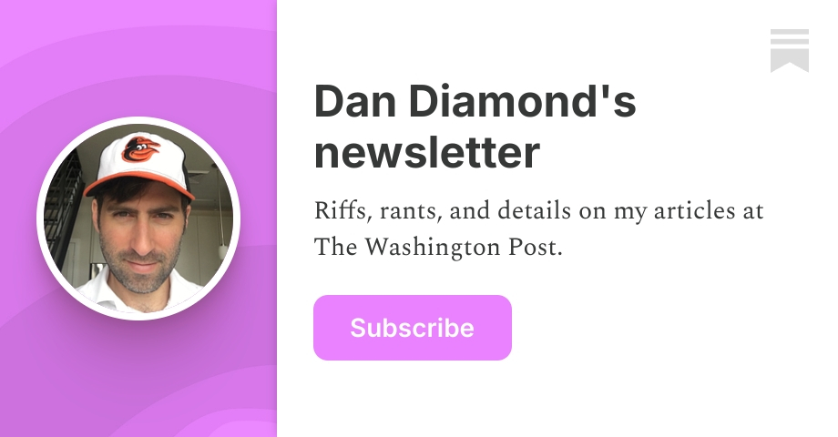Riffs, rants, and details on my articles at The Washington Post. Click to read Dan Diamond's newsletter, a Substack publication with thousands of subscribers.
